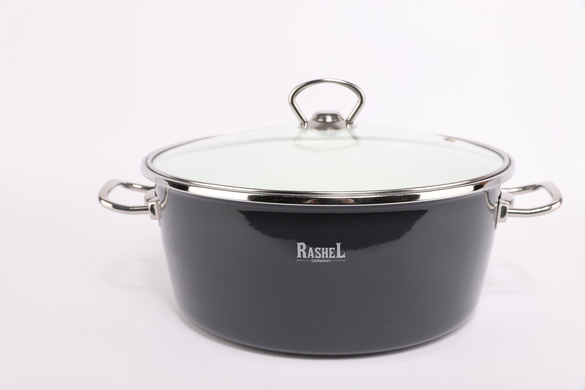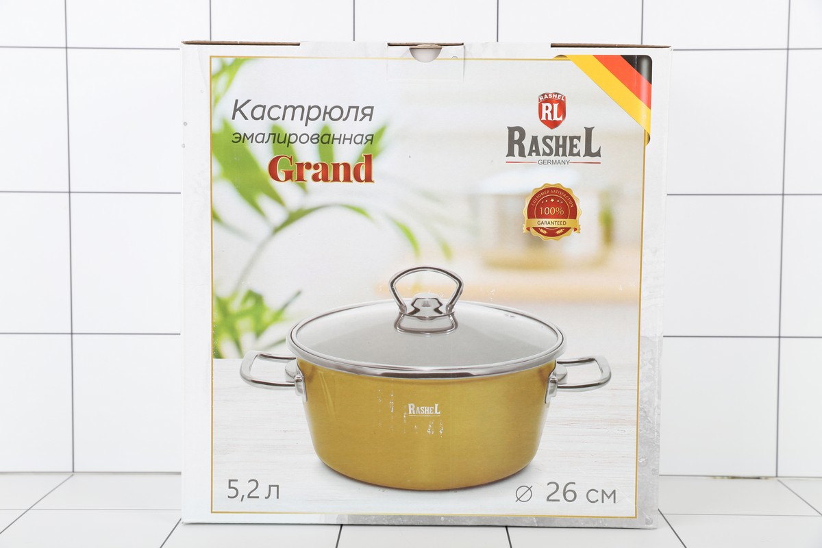 Кастрюля RASHEL 5.2 л, эмалированная, со стеклянной крышкой, ручка хром, графитовая R8026 предназначена для приготовления пищи. Кастрюля выполнена из стали высокого качества с глянцевым эмалированным покрытием внутри и снаружи. Эмаль устойчива к пищевым кислотам, не вступает во взаимодействие с продуктами и не искажает их вкусовые качества, не вызывает аллергию и надёжно защищает пищу от контакта с металлом. Кроме того, такое покрытие долговечно, оно устойчиво к механическому воздействию, не царапается, а стальная основа практически не подвержена механической деформации, благодаря чему срок эксплуатации увеличивается. Кастрюля подходит для тепловой обработки пищевых продуктов, для приготовления холодных блюд, для хранения и переноски пищевых продуктов. Подходит для всех видов плит.