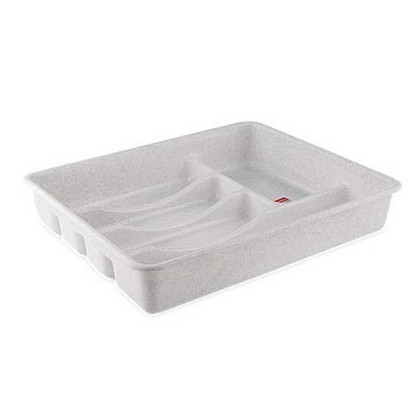 Лоток для столовых приборов Казалось бы такая мелочь – всего лишь пластиковый лоток для столовых приборов. Но, на хорошей кухне мелочей не бывает вовсе. Каждая вещь, каждая деталь должна находиться на своем месте, чтобы ее всегда можно было достать и положить обратно, не затрачивая лишних сил и времени. Именно такими, компактными и элегантными, всегда сохраняющими порядок и уют на вашей кухне и являются лотки из пластмассы, предназначенные для хранения столовых приборов, от компании Полимербыт. Состав: пластик Размер изделия (мм): 375*305*70