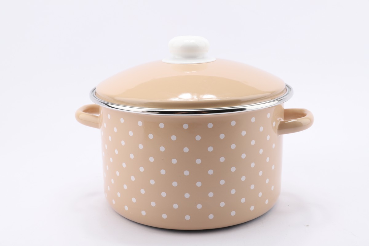 Эмалированная посуда является самой экологичной из существующих. Двухслойное стеклокерамическое покрытие не подвергается окислению и является абсолютно безопасным для организма. В посуде можно не только готовить, но и хранить пищу. Посуда не впитывает запахи блюди не изменяет вкусовые качества приготовленной еды. Эмалированная посуда легко моется. Можно готовить на плитах любого типа. На дне изделий без ободка допускаются «точки» - следы от иголок, на которые изделие ставится и обжигается в печи. На изделиях с ободком таких следов нет, т.к. для обжига они ставятся вверх дном, а борт затем закрывается ободком из нержавеющей стали.