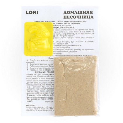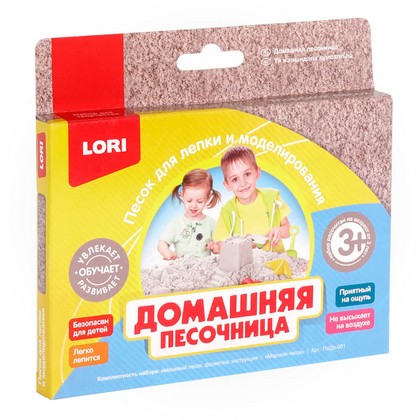 Домашняя песочница - песчаная масса, в которой песчинки скрепляются между собой при помощи пластичного акрилового клея. Такой песок не высыхает и не застывает на воздухе, приятный на ощупь, не пристает к рукам во время лепки, не пачкает одежду. Использовать можно неоднократно. Занятия с набором развивают мелкую моторику, образное мышление, воспитывают усидчивость, терпение, аккуратность. Песок 150 гр., формочка, инструкция.