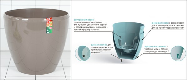 для дома - автополив - морозостойкий - УФ-сопротивляемость - нет протекания воды при поливе - нет застаивания корней в воде - корни обеспечены циркуляцией воздуха