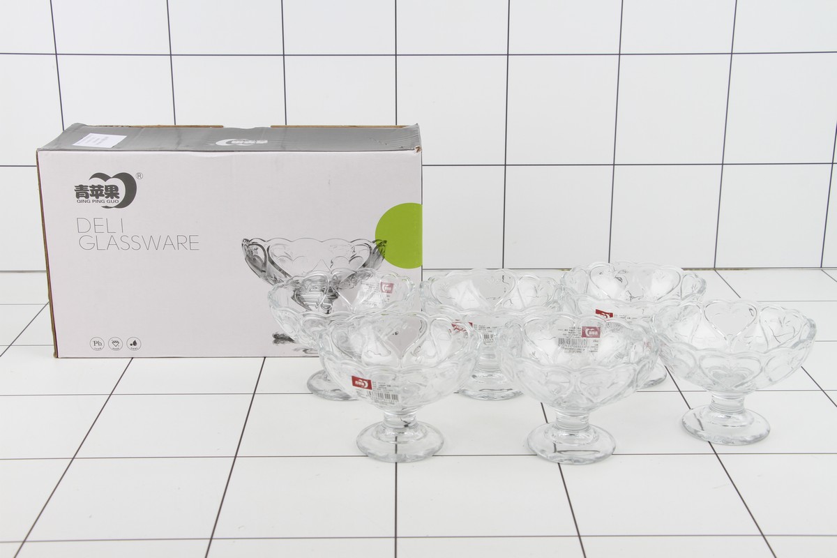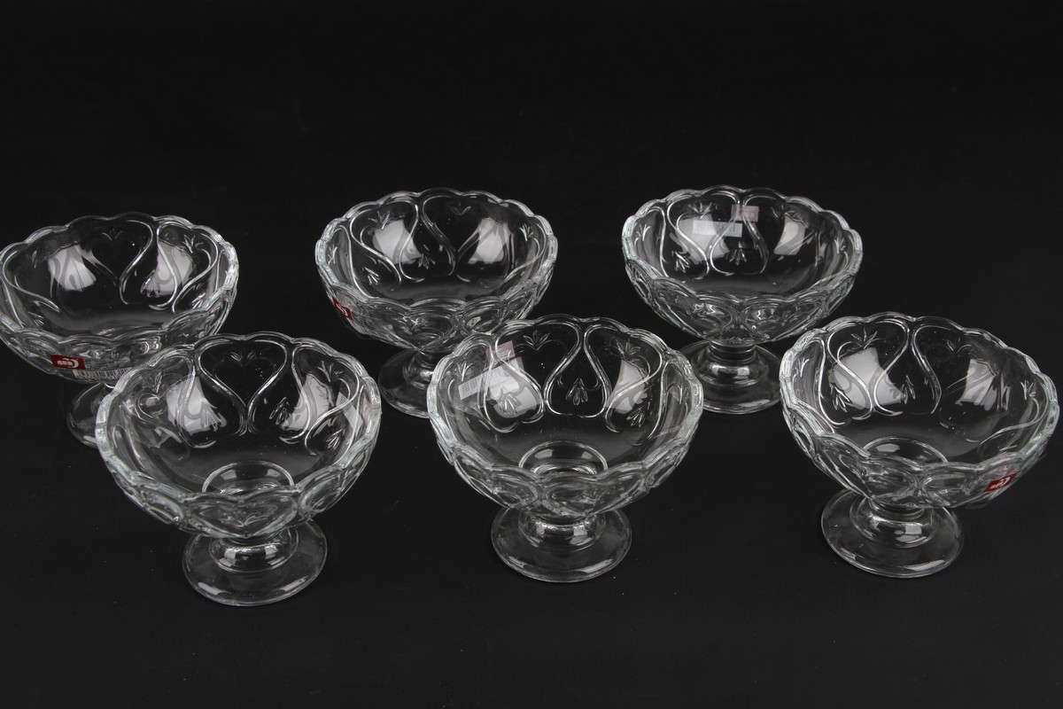 Набор сахарниц/варенниц на ножке 6 шт. стеклянные - Высота 7,3 см, диаметр 10 см - Цвет: прозрачный - Материал: прочное узорное стекло - Подарочная упаковка
