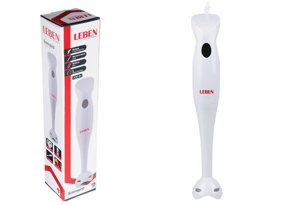 Блендер LEBEN – это лучшая альтернативная замена громоздким кухонным комбайнам, ножам и овощерезкам. Погружной блендер многофункциональный бытовой прибор, который значительно облегчит приготовление блюд и станет верным помощником любой хозяйке. Комплектация Насадка для измельчения и смешивания Режим работы 1 скорость Длина сетевого шнура 1 м