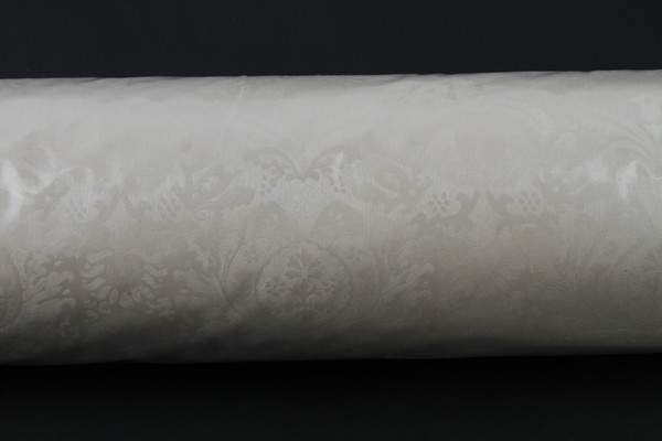 Клеенка столовая коллекции "ШЕЛКОВЫЙ ТЕКСТИЛЬ" изготовлена на тканевой основе с влагонепроницаемым ПВХ-покрытием. Выпускается в рулонах шириной 135 см и длиной 20 пог. м. Благодаря специальной обработке материал воплощает фактуру натурального шелка с перламутром, а изящное тиснение придает изделию элегантность и утонченность.