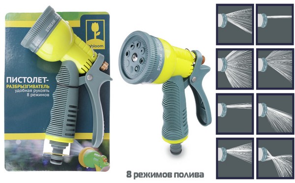 Пистолет распылитель Inbloom с эргономичной ручкой имеет 8 режимов работы. Благодаря удобной регулировке вы можете легко устанавливать нужный режим и поливать растения разными способами — от мягкого распыления до мощной вертикальной или плоской струи. Пистолет распылитель Inbloom с эргономичной ручкой получил высокопрочный пластиковый корпус. Аксессуар удобно ложится в руке и обеспечивает комфортный длительный полив.